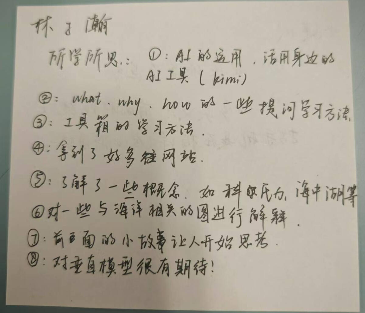 Through careful listening during the class and summarizing after class, we have created an Exit Ticket that encapsulates the key points from the Basic Ocean Science class and our understanding of them. We hope this can aid everyone in their review
